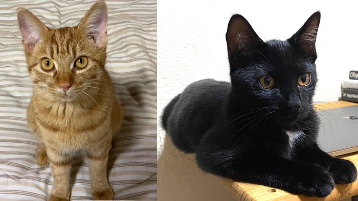 2020年5月下旬、生後5週間経ったところで、保護を引き継ぐ。キジトラ1匹(メス)は母猫の飼い主一家の娘さんが引き取り、黒猫(オス)と茶トラ(オス)の2匹を引き取ることになる。最初は飼うつもりではなく、ある程度体が大きくなるまで、車の犠牲にならないよう保護するつもりでした。あとは立派なノラ猫になるか、家猫になるか子猫次第と思っていましたが、結局そのまま家族になりました。黒猫はジジ、茶トラはチャチャと名付けました。育てるのに手一杯で写真や動画が全然撮れてないです。つづく。