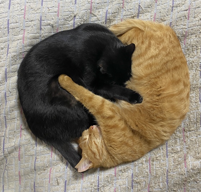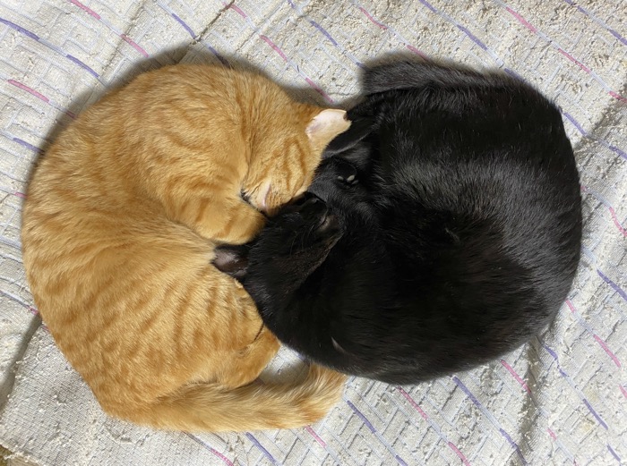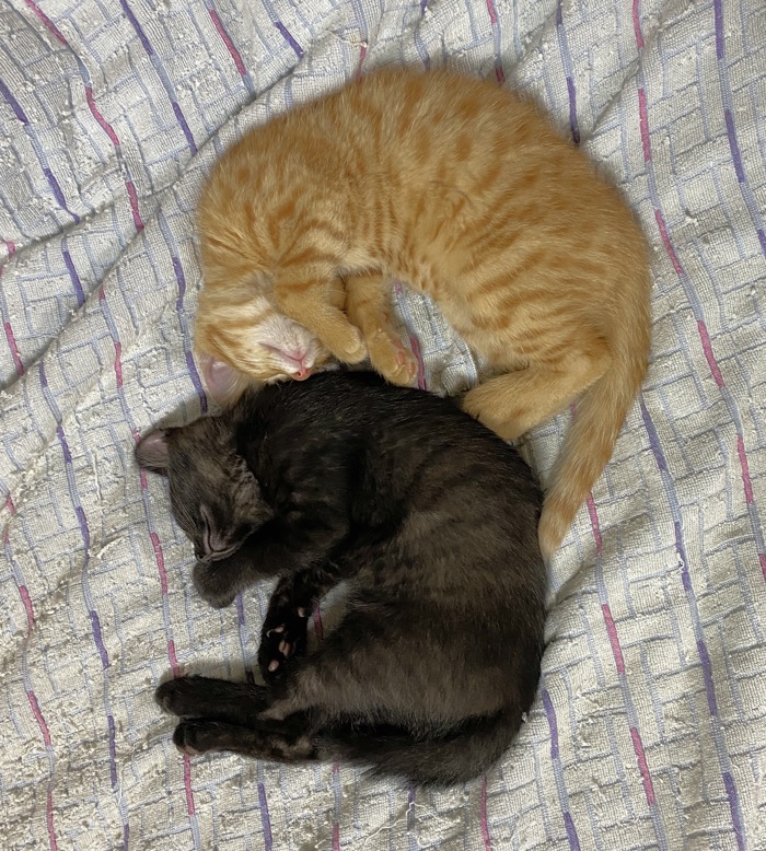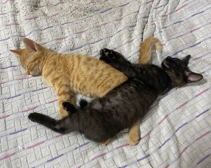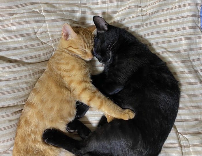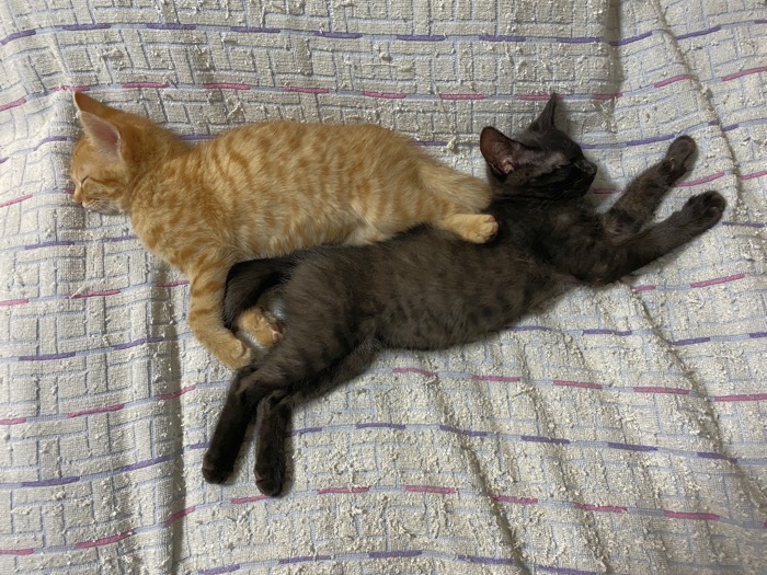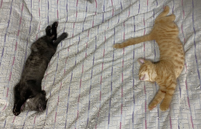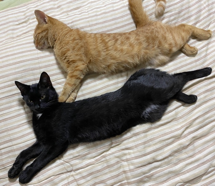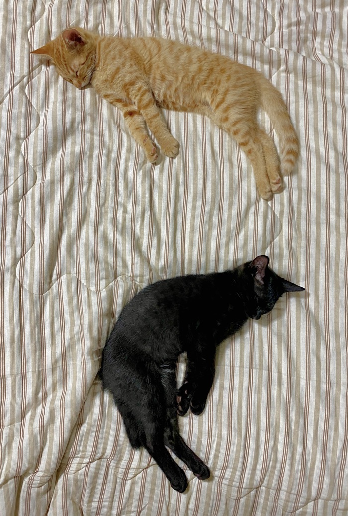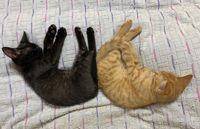 仔猫の頃は、不思議なほど寝相がシンクロしていることがよくありました。